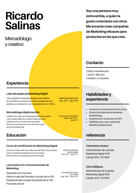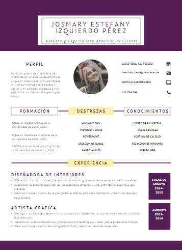 Muestras de Diseños CV. Todos los Perfiles Profesionales son personalizados a cada caso o situación.