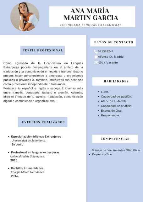 El diseño, estructura y redacción del Curriculum Vitae, transmite profesionalidad.
