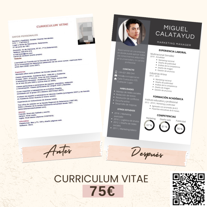 Nuestro equipo está formado por especialistas altamente cualificados y motivados, ofrecemos servicios profesionales de redacción de currículum vitae, optimización LinkedIn, carta de presentación, elevator pitch, herramientas de búsqueda de empleo que te harán destacar.